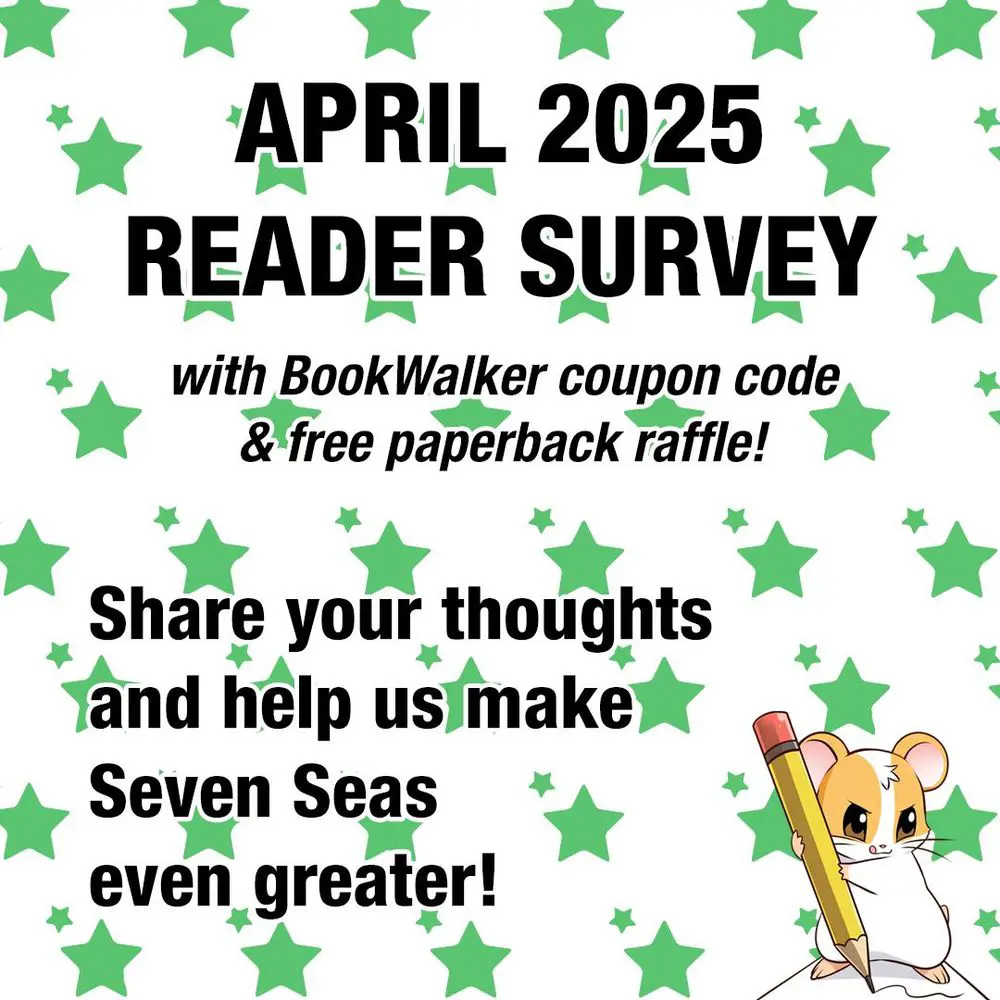 The Seven Seas April 2025 Reader Survey is here! 🌷✨📚 Answer questions, suggest books for us to license, and enter to win a FREE paperback. You'll also get a BOOKWALKER coupon for our ebooks!