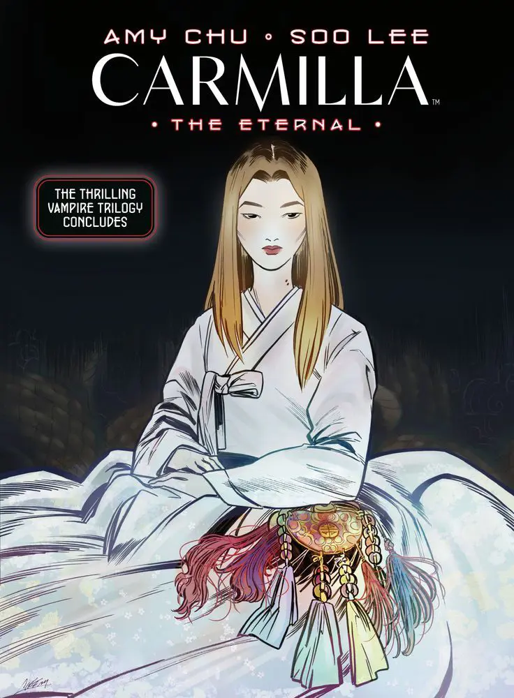 Reminder: The final chapter in @amychu.bsky.social and @sooleedraws.bsky.social's award-winning vampire trilogy was revealed! Carmilla: The Eternal, is set to release this October. First look and details: bit.ly/4bsjl6k