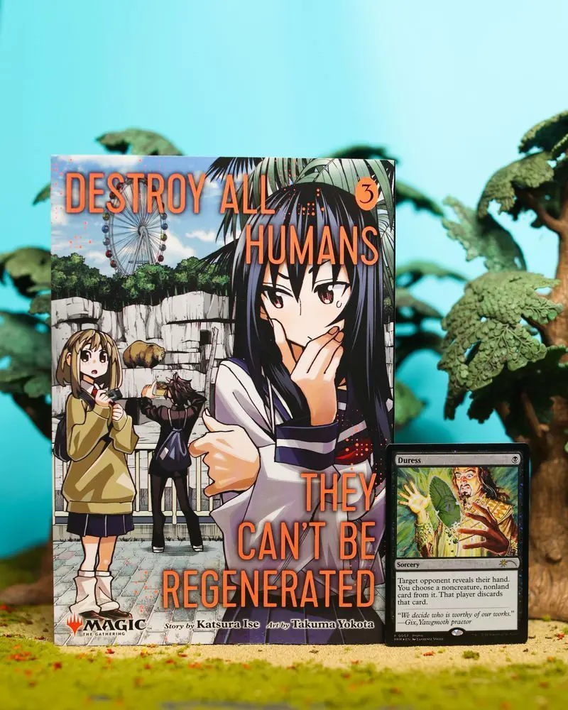 Duress is the name of the game AND of the exclusive limited edition Magic: The Gathering card included in Destroy All Humans... A Magic: The Gathering Manga, Vol. 3. Limited quantities available, secure your copy now! @wizards_magic