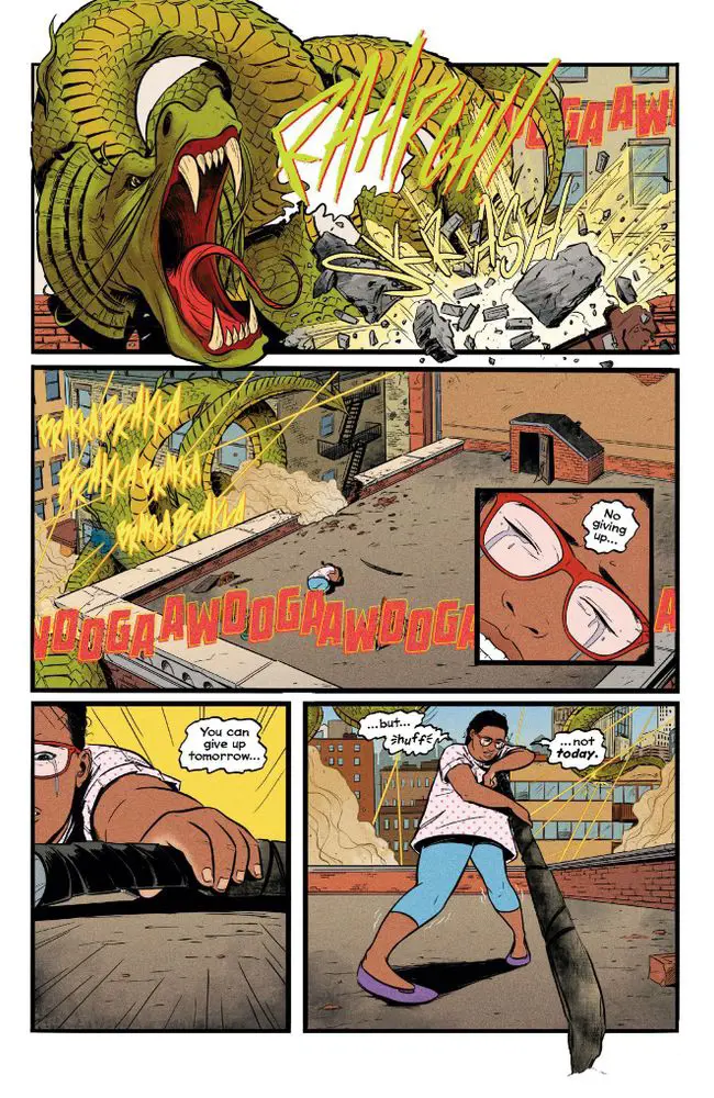 Panel is from Reversal, a contemporary fantasy/action-adventure graphic novel from Eisner-nominated writer @alexdecampi.bsky.social and artists @skyepatridge.bsky.social and @wastedwings.bsky.social