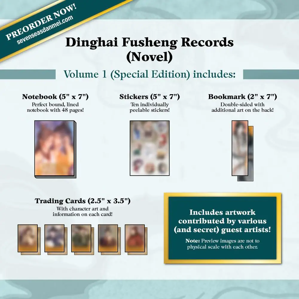 Enjoy this sneak peek of the bonus merch included with DINGHAI FUSHENG RECORDS (NOVEL) Vol. 1 (SPECIAL EDITION) by Arise Zhang, aka Fei Tian Ye Xiang (非天夜翔)! #SevenSeasDanmei #DinghaiFushengRecords