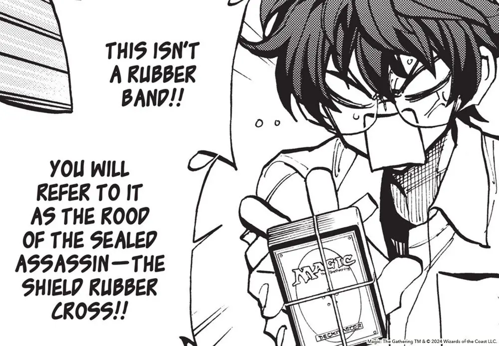 Rubber band … or shield? (via Destroy All Humans. They Can’t Be Regenerated. A Magic: The Gathering Manga, Vol. 3)