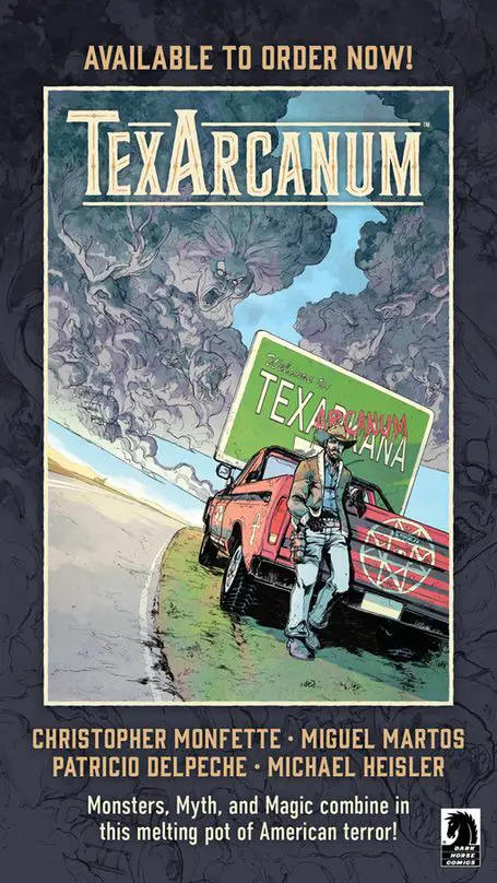 ICYMI: TexArcanum, a new four-issue horror miniseries that mashes unfamiliar mythologies and American identities into one new story is set to kick off this July with issue #1. Pre-order now: bit.ly/3QXFDn5