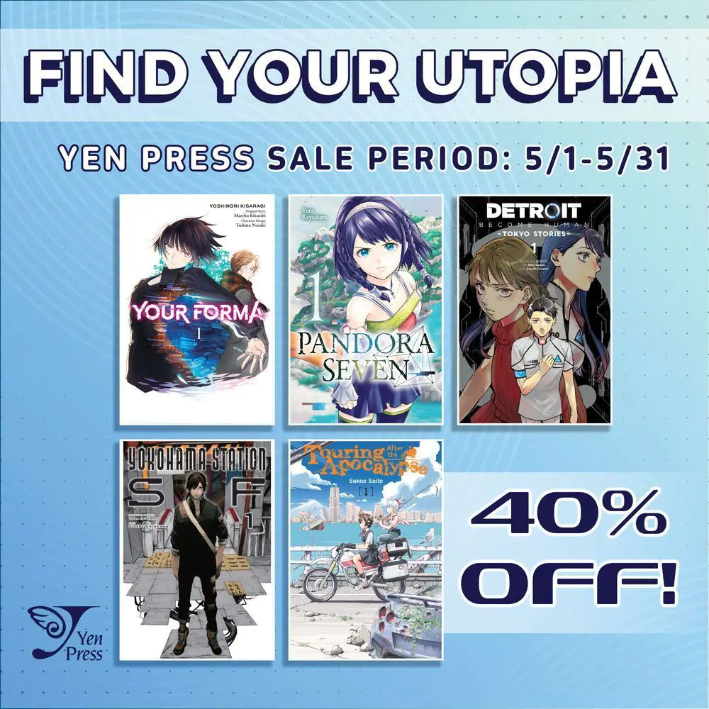 Find a new future to discover within the pages of these manga! From now until 5/31, you can get select sci-fi titles for 40% off, exclusively from the Yen Webstore!