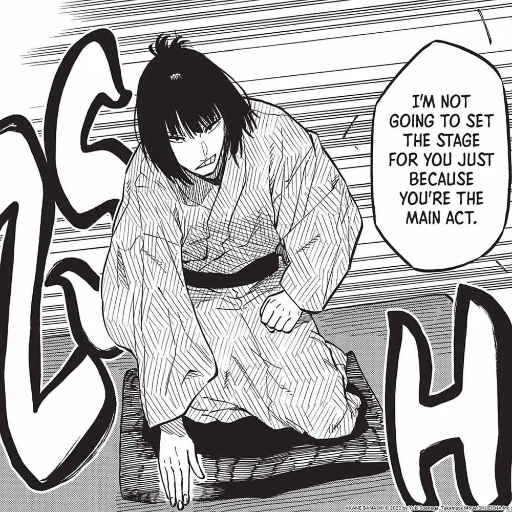Rakugo is all about commanding the spotlight, and this fierce competitor refuses to let anyone steal the show. (via Akane-banashi, Vol. 11)