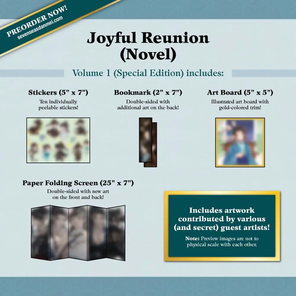 Check out this sneak peek of the bonus merch included with JOYFUL REUNION (NOVEL) Vol. 1 (SPECIAL EDITION) by Arise Zhang, aka Fei Tian Ye Xiang (非天夜翔)! #SevenSeasDanmei #JoyfulReunion