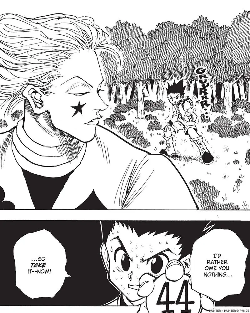 Gon isn’t taking any favors from Hisoka, pride over debt. 💪🔥(via Hunter x Hunter (3-in-1 Edition), Vol. 2)
