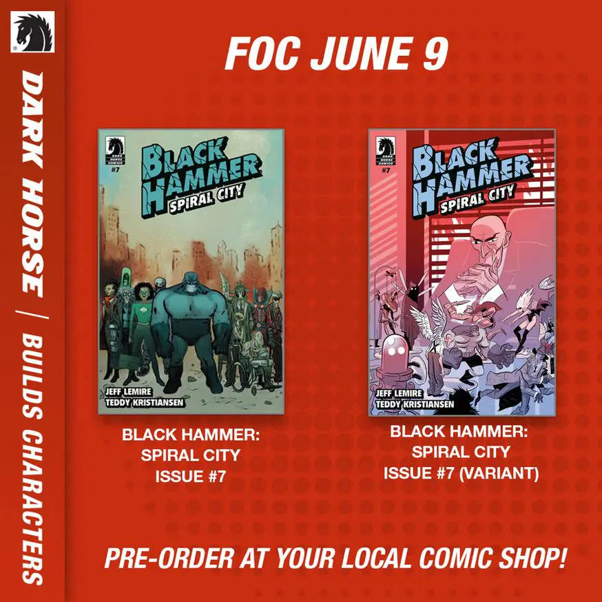 Black Hammer: Spiral City comes to its conclusion with issue #7, so don't forget to pre-order your copy! Details: bit.ly/3SDU00Q