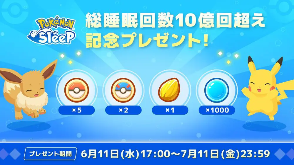 Serebii Update: Pokémon Sleep has reached 1 billion sleep sessions recorded. To celebrate, various items are being given to all players as a gift from now until July 11th 2025