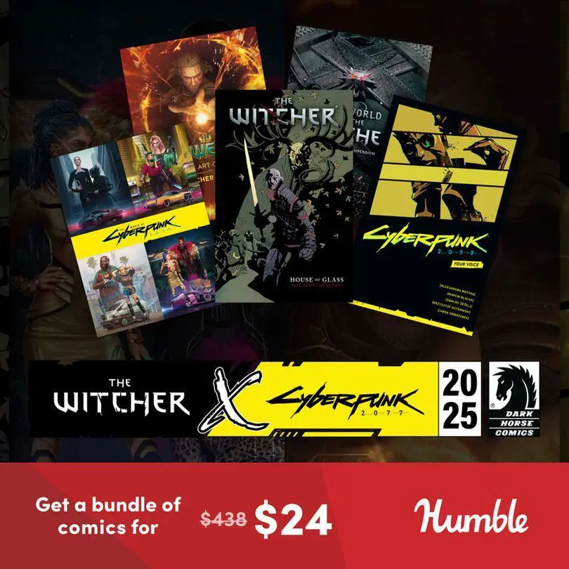 Silver Swords and Cyber Psychos! For a limited time, @humblebundle.com is offering a bundle of The Witcher and Cyberpunk 2077 books and comics. More: bit.ly/4khzijs