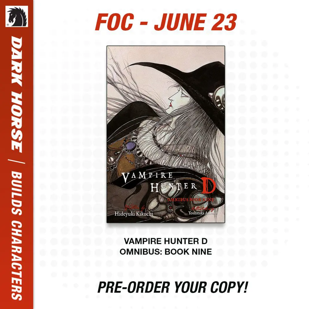 The hunt continues! Pre-order your copy of Hideyuki Kikuchi's Vampire Hunter D Omnibus Book Nine wherever you buy books: bit.ly/3FXPrf1