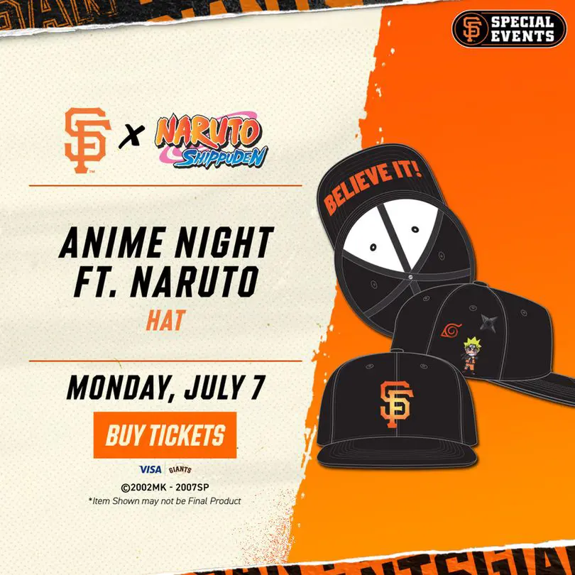 Join us & the Giants for Anime Night in celebration of NARUTO SHIPPUDEN to receive this special event hat!