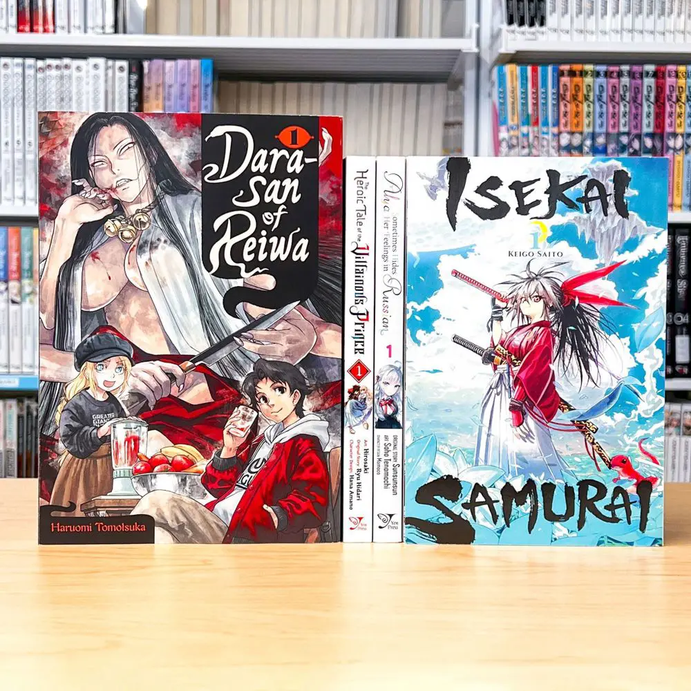 Grab the first volumes of Dara-san of Reiwa, The Heroic Tale of the Villainous Prince, Alya Sometimes Hides Her Feelings in Russian, and Isekai Samurai, all available TODAY!