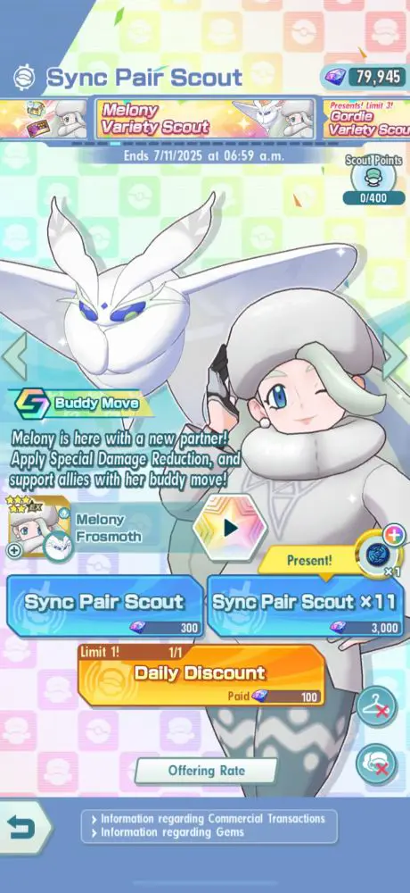 Serebii Update: The Pokémon Masters EX Melony & Frosmoth Variety Scout is now available, adding the Sync Pair into the game