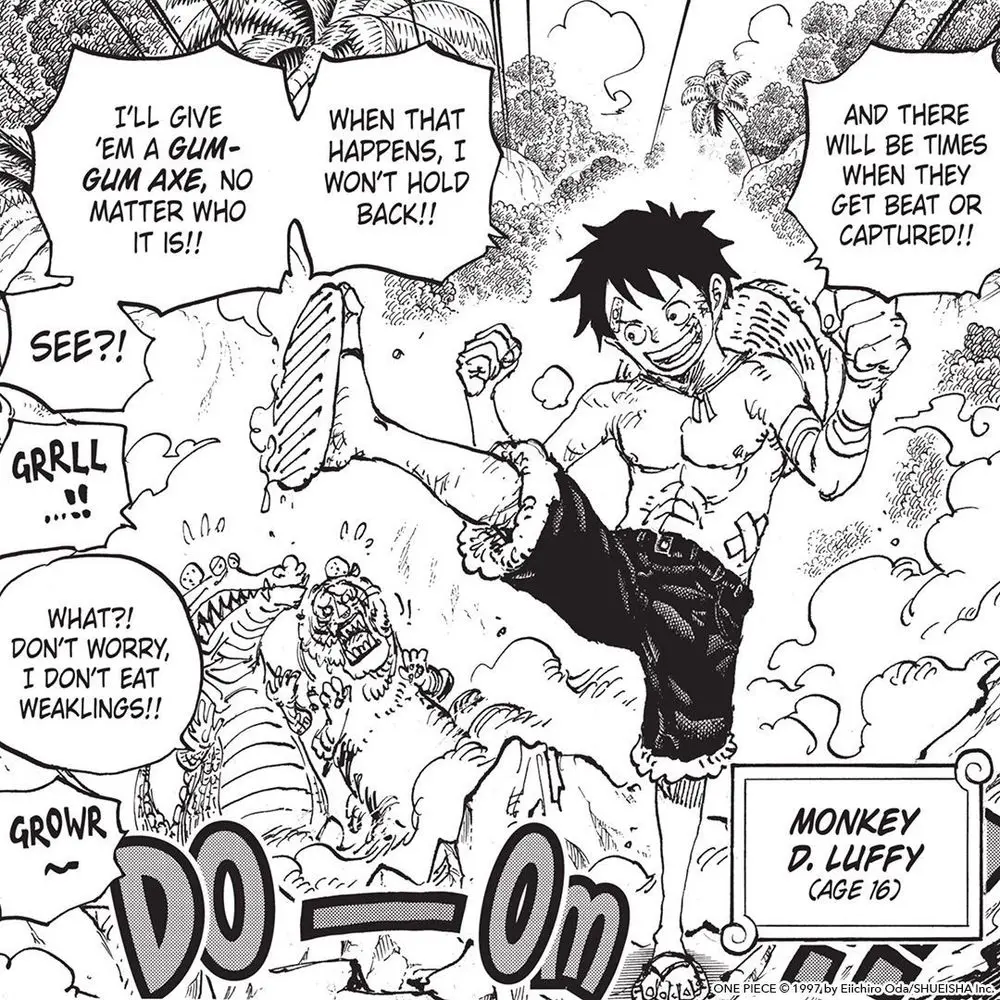 Sixteen and fearless, Luffy’s not backing down from anything or anyone. Some things never change 🔥 (via One Piece, Vol. 109)