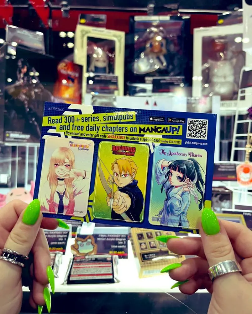Use code SE@AX2025 on the MangaUp! app and receive 400XP instantly to unlock 10 regular chapters or 5 advance chapters! At the show? Make a purchase at the @square-enix-games.com Booth SH-3314 & get an exclusive MangaUp! Sticker sheet! (While supplies last!)