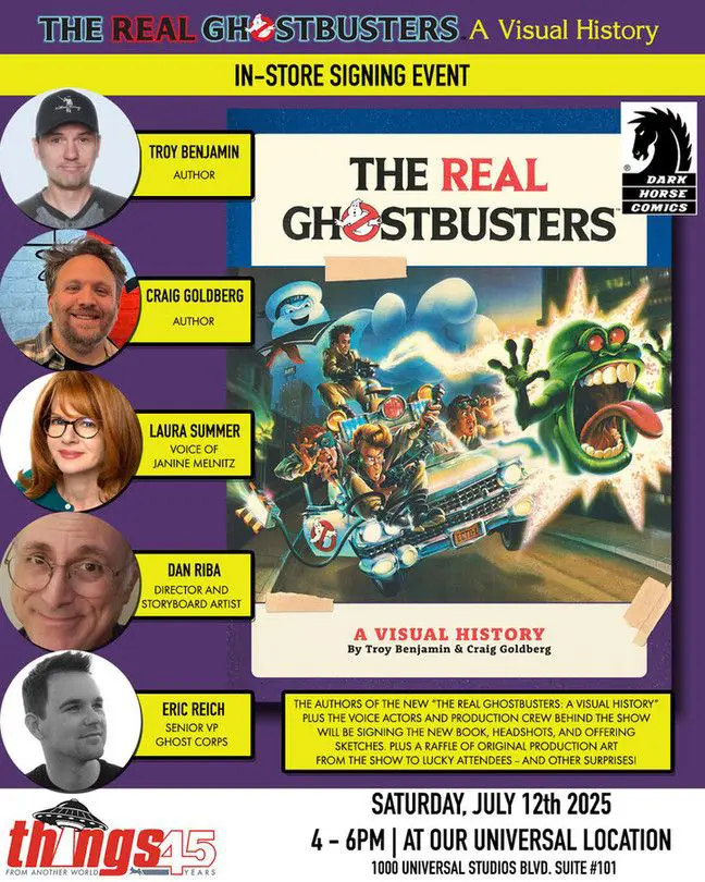 Alert! Signing at the @tfaw.bsky.social Universal location on July 12 with @troystillplays.bsky.social, Craig Goldberg, and more to mark the release of The Real Ghosbusters: A Visual History. More on the book: bit.ly/4erVK7k