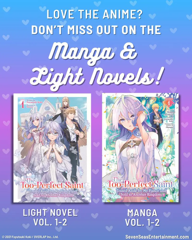 Did you catch THE TOO-PERFECT SAINT: TOSSED ASIDE BY MY FIANCÉ AND SOLD TO ANOTHER KINGDOM anime? There's more to the story in the Light Novels and #Manga! Start reading both today 🌟