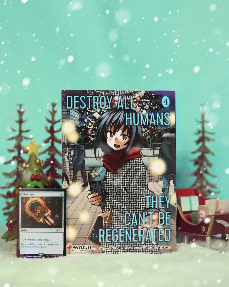 Give yourself a gift and don’t miss out on this exclusive limited edition Voltaic Key Magic: The Gathering card included in Destroy All Humans... A Magic: The Gathering Manga, Vol. 4. Limited quantities available, secure your copy now! @magic.wizards.com