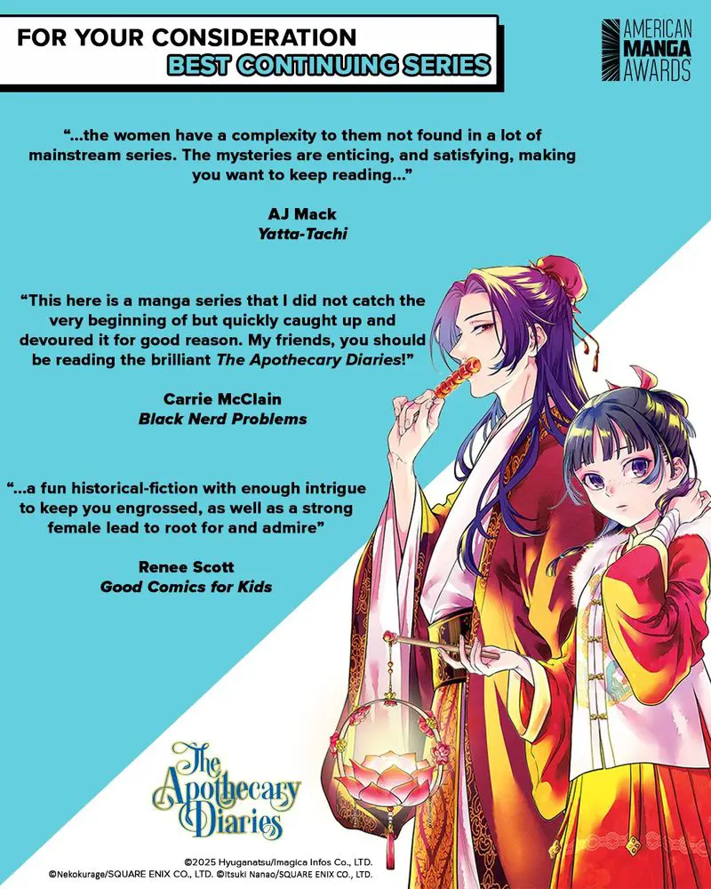 π¨FOR YOUR CONSIDERATION: BEST CONTINUING MANGA SERIES β The Apothecary Diaries (Vols. 12-13)!
