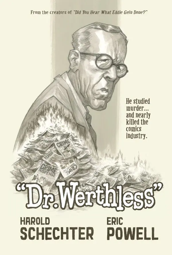 In a recent episode of @cbccpodcast.bsky.social, @eric-powell-comics.bsky.social and Harold Schechter discuss their latest graphic novel Dr. Werthless covering Dr. Fredric Wertham, comic books’ greatest boogeyman.