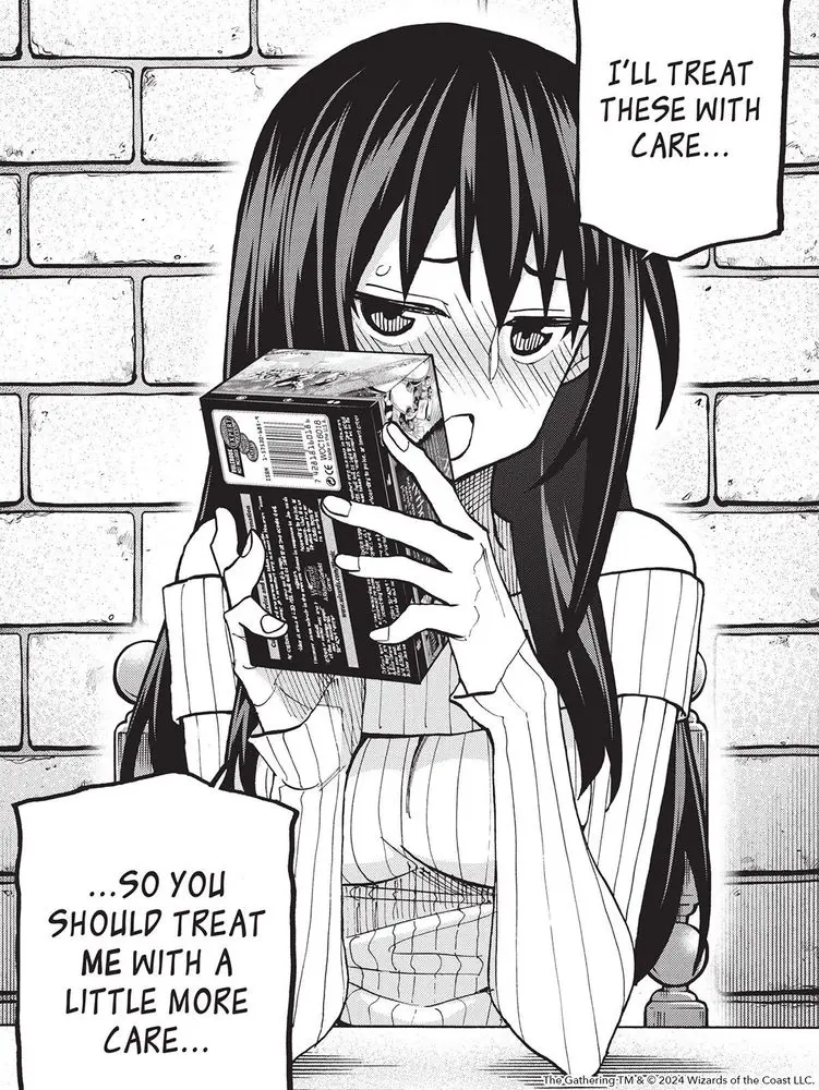 Is Emi about to reveal her secret?!? 💘(via Destroy All Humans. They Can’t Be Regenerated. A Magic: The Gathering Manga, Vol. 4)