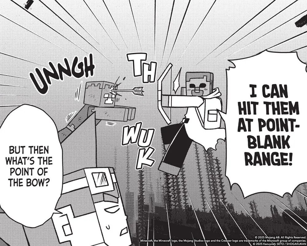 Underwater bow lessons 101 (via Minecraft: The Manga, Vol. 2)