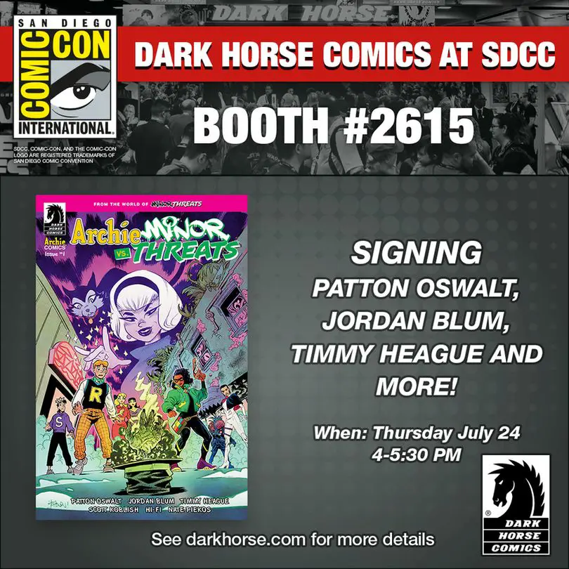 #SDCC25 Alert: From 4-5:30 PM today, don't miss a special @minorthreats.bsky.social signing with creators @pattonoswalt.bsky.social, @blumjordan.bsky.social, @comicbooktimmy.bsky.social and more at booth #2615.