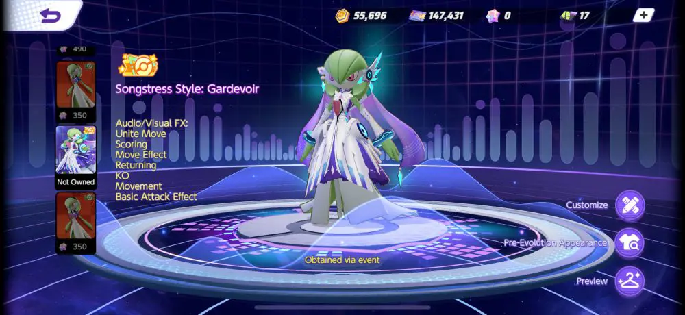Serebii Update: Pokémon UNITE has added new Holowear through the Treasure Chest feature: Songstress Style for Gardevoir