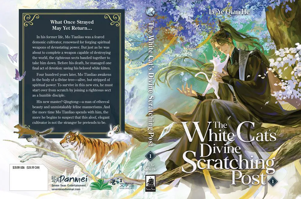New #danmei cover reveal! ✨ THE WHITE CAT’S DIVINE SCRATCHING POST (NOVEL) Vol. 1 by Lv Ye Qian He, with series art by Bakuten! #SevenSeasDanmei