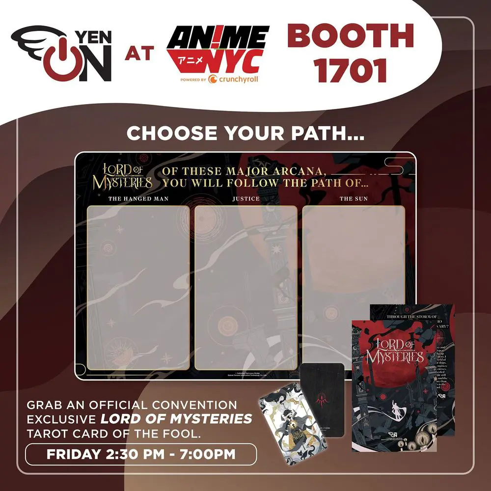 Lord of Mysteries fans who are attending #AnimeNYC this weekend will be able to grab our official tarot card of The Fool if you stop by Yen Press Booth 1701 on Friday, 8/22 starting from 2:30pm!