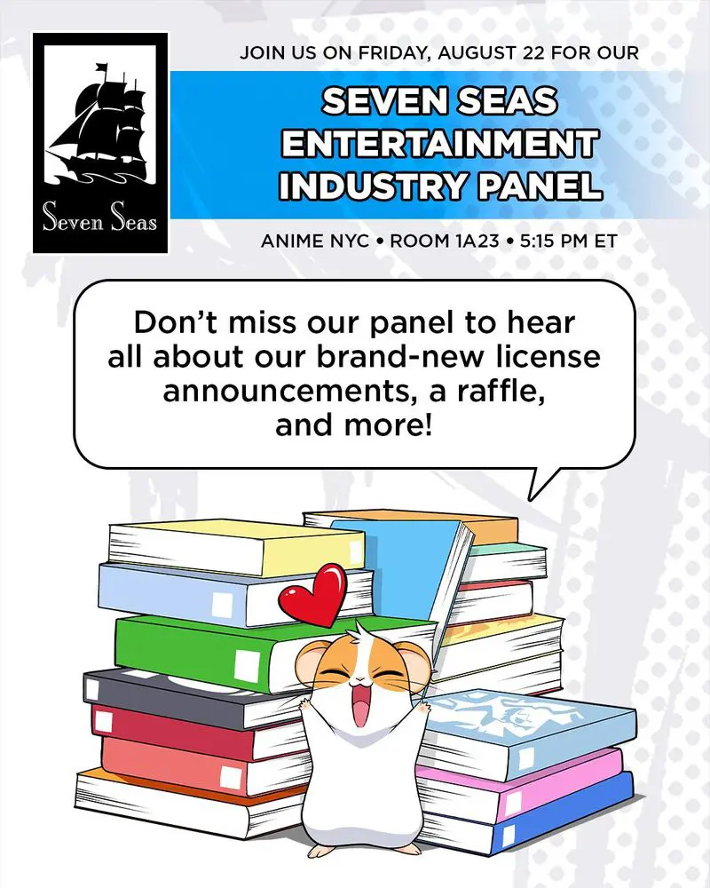 All aboard for the Seven Seas Industry Panel! 🌊 Anime NYC attendees, join us at 5:15 pm ET - 6:15 pm ET in Room 1A23 to hear all about our brand-new licenses and more!