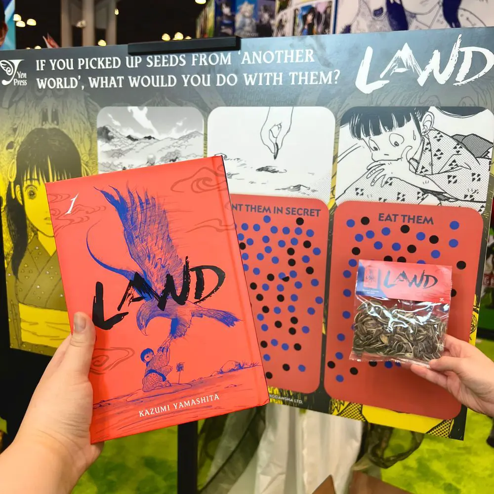 ! Stop by booth 1701 for a chance to pick up some ✨magical✨seeds AND an early copy of Land, Vol. 1! 🌱