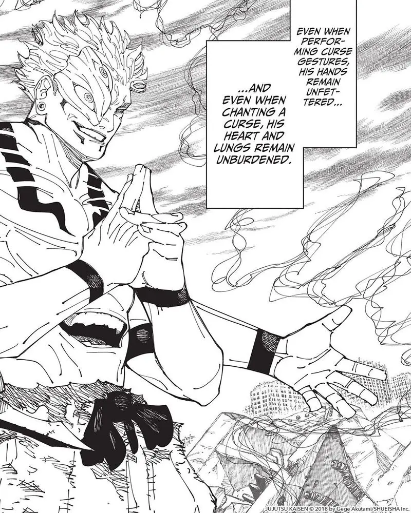 Sukuna shows what true mastery of cursed energy looks like. (via Jujutsu Kaisen, Vol. 27)
