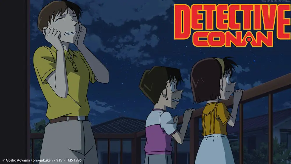 The Detective Boys see a ghost on the rooftop across the street! Later, as they leave Motoko Kanazawa’s house, they find countless footprints at the entrance…!?
