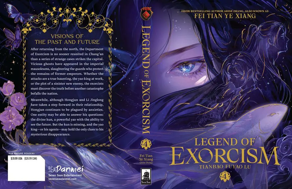 New #danmei cover reveal! ✨ LEGEND OF EXORCISM: TIANBAO FUYAO LU (NOVEL) Vol. 4 by Arise Zhang, aka Fei Tian Ye Xiang (非天夜翔), with beautiful series art by Ruthie (@kkcoocool.bsky.social)! #SevenSeasDanmei #LegendOfExorcism