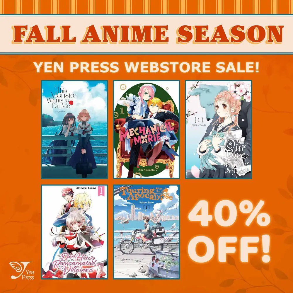 From now until the end of the month, you can grab select Fall Anime Season titles for 40% off, only from the Yen Webstore!