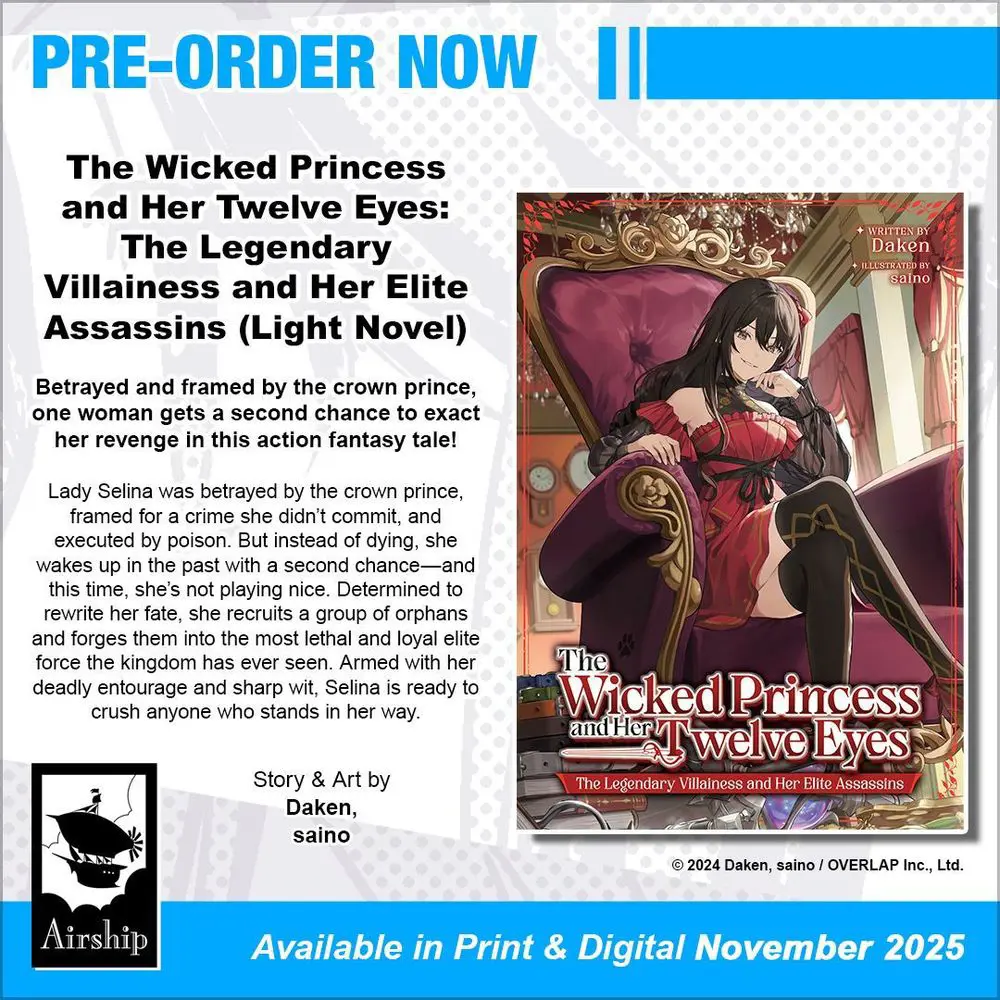 Pre-order THE WICKED PRINCESS AND HER TWELVE EYES: THE LEGENDARY VILLAINESS AND HER ELITE ASSASSINS (LIGHT NOVEL)! #PreordersLive #7SeasBooks