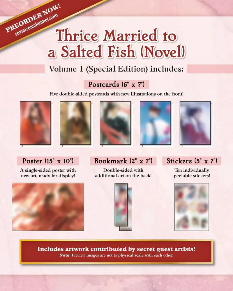 Check out this sneak peek of the bonus merch included with THRICE MARRIED TO A SALTED FISH (NOVEL) Vol. 1 (SPECIAL EDITION) by Bi Ka Bi! #SevenSeasDanmei