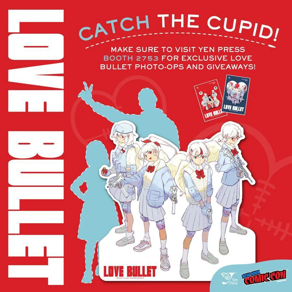 Stop by Yen Press Booth 2753 during the designated photo-op times to snap a photo for a chance to get exclusive Love Bullet photocards!