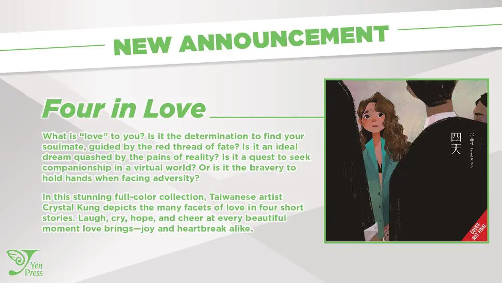 What is “love” to you? In this stunning full-color collection, Taiwanese artist Crystal Kung depicts the many facets of love in four short stories. Laugh, cry, hope, and cheer at every beautiful moment love brings—joy and heartbreak alike.