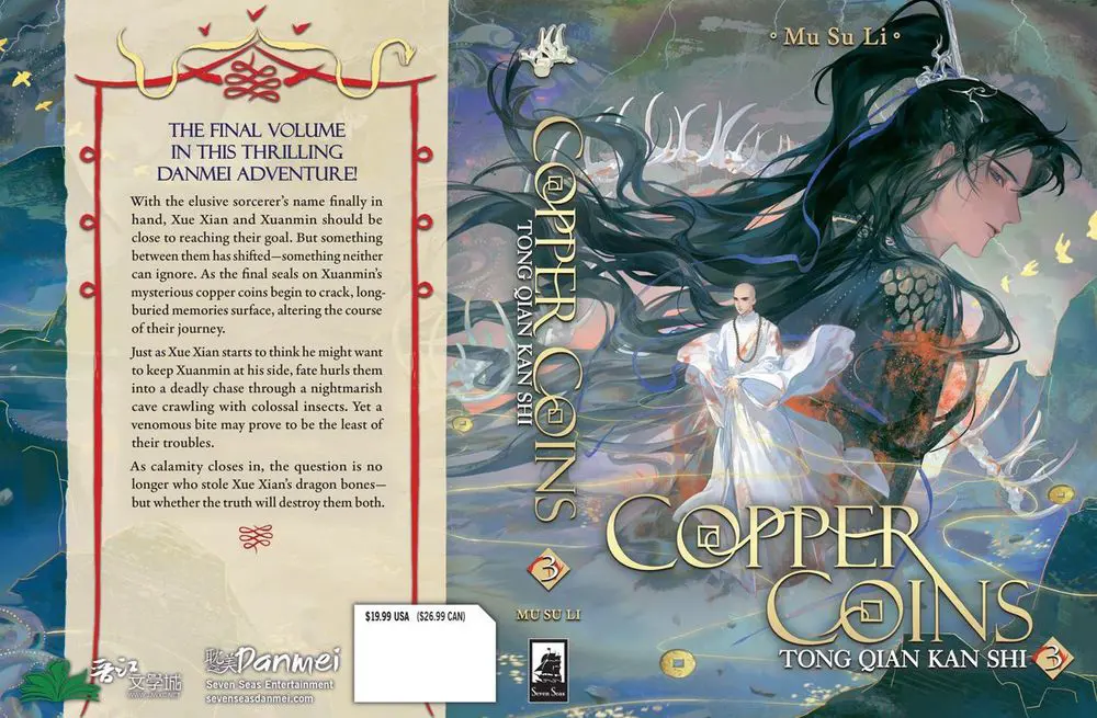 New #SevenSeasDanmei cover reveal! ✨ COPPER COINS: TONG QIAN KAN SHI (NOVEL) Vol. 3, the finale to the #danmei adventure set in ancient China by Mu Su Li—cover art by Porridge + interior art by DALO! #CopperCoins