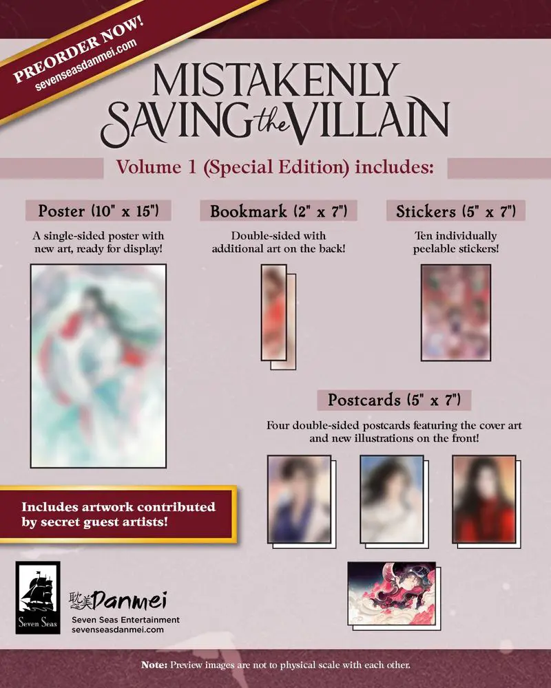 Take a look at this SNEAK PEEK of the bonus merch included with MISTAKENLY SAVING THE VILLAIN (NOVEL) Vol. 1 (SPECIAL EDITION) by Feng Yu Nie! #SevenSeasDanmei #MistakenlySavingTheVillain #MisVil