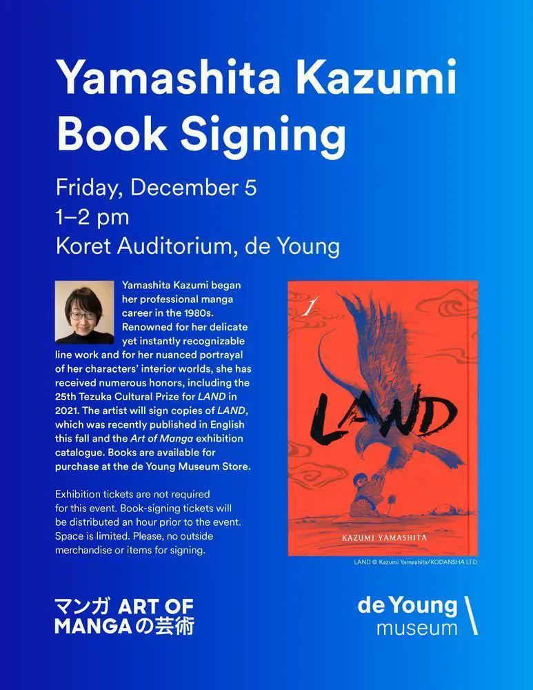 Award-winning creator, Kazumi Yamashita, will be making an appearance at the de Young Museum next Friday, 12/5 for an exclusive book signing event with the Art of Manga exhibition!