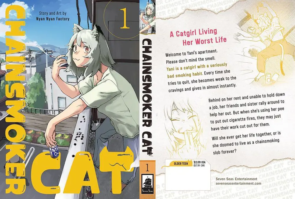 Where there’s smoke, there’s a catgirl chainsmoking in this comedy manga! A look at the daily troubles of one catgirl and her attempts to get her life together.