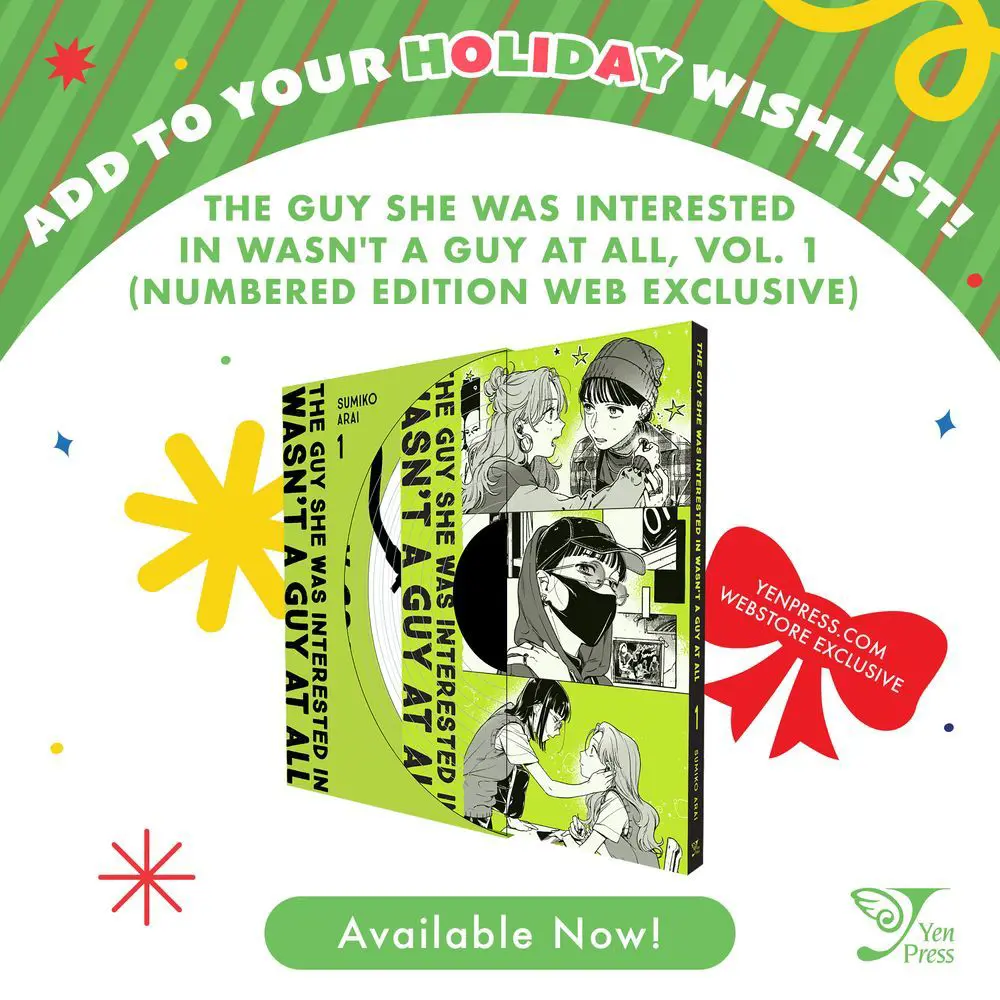 With a new hardcover design and protective slip-case, the Yen Press Webstore Exclusive version of The Guy She Was Interested In Wasn't a Guy at All, Vol. 1 is great for hardcore fans and new readers alike! 💚