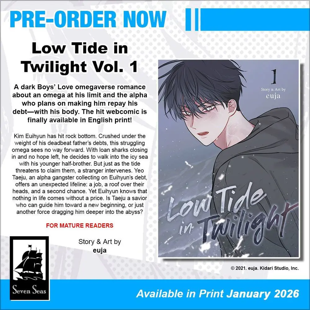 In this dark #omegaverse romance, a man at rock bottom accepts an unexpected lifelineā¦but everything has a price. The full-color, Mature-rated Boys' Love / #BL manhwa, now in English print!