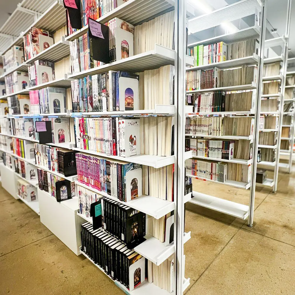 You might have seen glimpses of our reference library in the background of our photos, but here's a look at the shelves of the Yen Press library at our office!