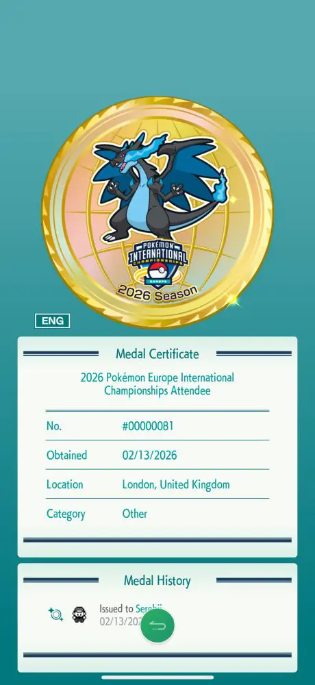 Serebii Update: A special Pokémon HOME medal is available this weekend at the Pokémon Europe International Championships in London