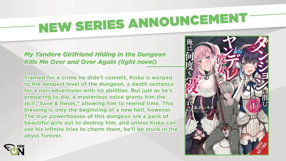 NEW SERIES ANNOUNCEMENT: My Yandere Girlfriend Hiding in the Dungeon Kills Me Over and Over Again (light novel)